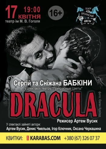Театр «Прекрасные цветы», где служит замечательная пара Бабкиных, создал спектакль-перформанс «Dracula», как остроэмоциональный пластический рассказ о проживании одиночества, которое у каждого свое и для каждого неизбежно.