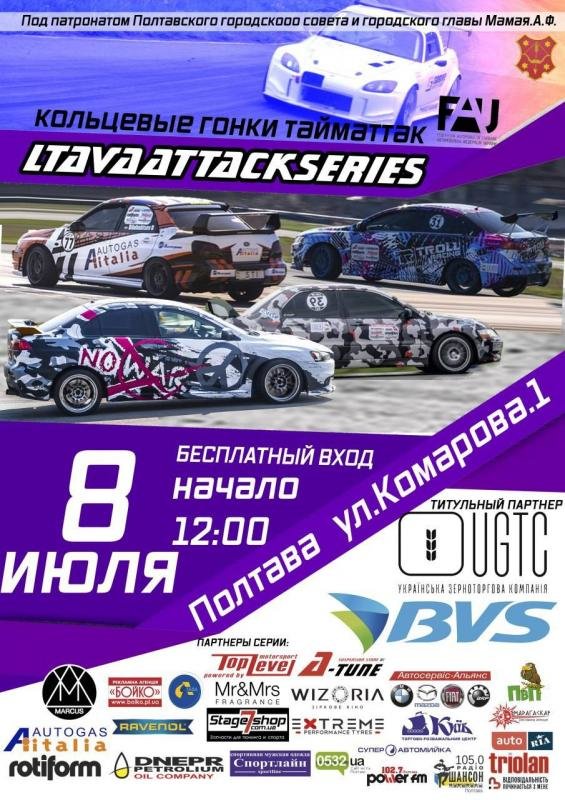 швидкість, тюнінг та автозвук У липні очікується 3 етап LTAVA ATTACK SERIES’18, а також EMMA Чемпіонат з тюнінгу та авто звуку. Обидва дійства грандіозні, залишають велику кількість вражень та позитивних емоцій у глядачів, особливо прихильників автоспорту. EMMA Чемпіонат з тюнінгу та авто звуку – теж вже не вперше проводиться на цій локації, і захоплює потужністю, від якої минулого року стіни штабу дрижали. Цього разу на СТК «Лтава» буде дійсно круто і гаряче. Щиро запрошуємо усіх полтавців отримати свою дозу позитиву та драйву! Програма вихідних: 7 липня (субота) EMMA Чемпіонат з тюнінгу та авто звуку 8 липня (неділя) LTAVA ATTACK SERIES’18 12:00