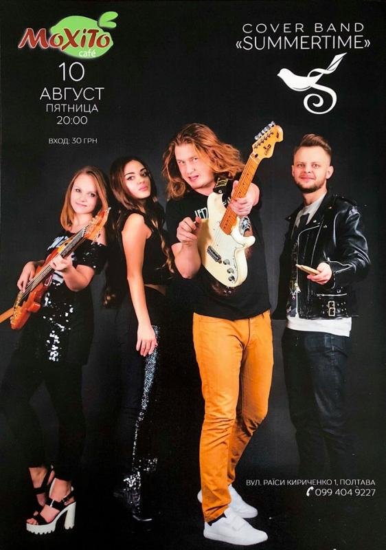 10 августа 2018 в 20:00 Cover Band "SummerTime" Вход: 30грн Бронирование столов 099 404 9227