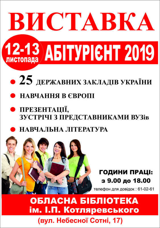 12-13 листопада з 9 до 18 години до Обласної бібліотеки ім. І. П. Котляревського за адресою: вул. Небесної Сотні, 17