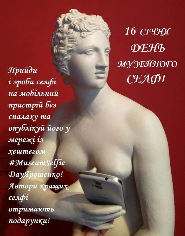 Полтавський художній музей (галерея мистецтв) імені Миколи Ярошенка запрошує взяти участь у Міжнародному флешмобі музейного селфі #MuseumSelfieDay