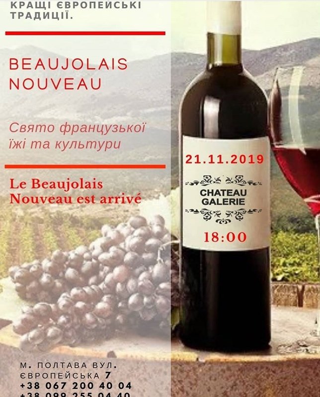 Запрошуємо Вас 21 листопада в 18:00 в ресторан Шато Галері на свято французької їжі та культури.