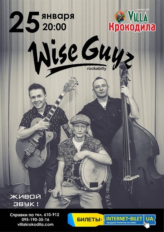 Харківська група WiseGuyz одні з кращих представників свого жанру в Україні, регулярно гастролюють по всій Європі і побували з туром в Австралії. Визнання за кордоном, 7 виданих альбомів і участь на європейських фестивалях - лише частина заслуг. Головний козир WiseGuyz в тому, що їхні виступи миттєво переносять публіку в атмосферу вінтажних Америки (1940х - 1960х років) і запалюють вечір відв'язних рок-н-ролом. Переконайтеся на танцполі!
