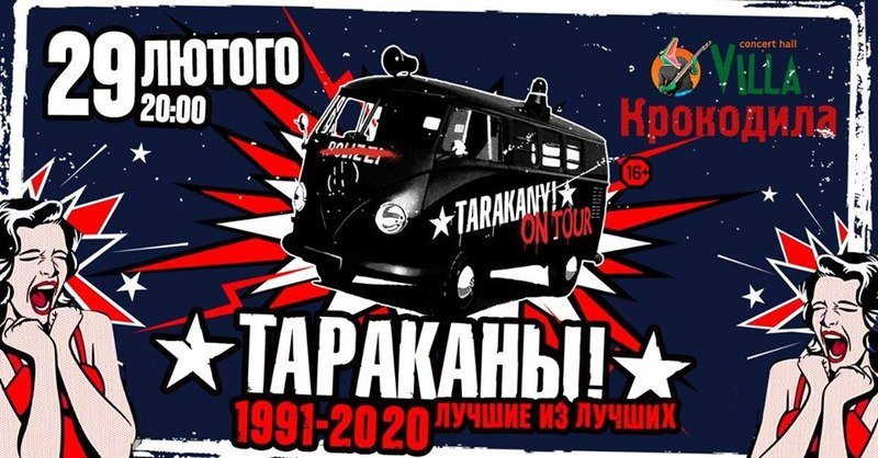 29 февраля 2020 года один из самых ярких, востребованных и любимых панк-рок коллективов, группа «Тараканы!», выступит в Полтаве!
