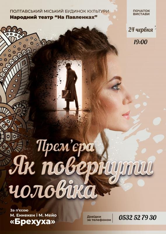 24 червня о 19:00 Полтавський міський Будинок культури запрошує на вистави «Як повернути чоловіка» Народного театру «На Павленках».