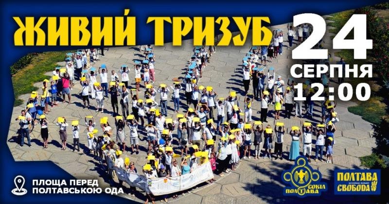24 серпня 2021 року до 30-ї річниці Дня Незалежності України у Полтаві відбудеться масштабна акція «ЖИВИЙ ТРИЗУБ». Організатори: Полтавська міська організація Всеукраїнського об’єднання «Свобода» та ВГО «Сокіл» . Традиційне місце збору ‒ площа перед Полтавською обласною державною адміністрацією. Захід розпочнеться о 12:00. Форма одягу ‒ вишиванка або біла футболка. Вперше акцію «ЖИВИЙ ТРИЗУБ» у Полтаві організували у 2012 році. Тоді полтавці заявили про свою проукраїнську позицію в часи влади Януковича. Акція покликана продемонструвати, що Україна – єдина і неподільна держава, а також підтримати патріотичний дух військових, які зараз перебувають на Донбасі. Такі заходи допомагають об’єднати людей у боротьбі проти зовнішнього ворога – Московії. Попри виклики сучасності, жодні обставини не завадять українцям святкувати День незалежності України! Святкувати і пам’ятати про мільйони наших братів і сестер, які поклали свої життя на вівтар волі держави! Запрошуємо гостей та жителів міста взяти участь у заході!