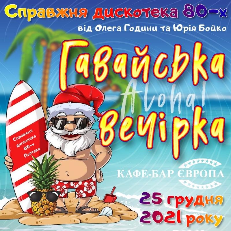 Алоха,друзі!!! Дискотека 80х від Олега Години та Юрія Бойка запрошує на велику Новорічну гавайську вечірку!! За вікнами холодно-а в нас буде по-тропічному гаряче! Вас зустрічає wellcome drink від магазинів "ГРАДУС" та дегустація алкогольного морозива SCANDAL.