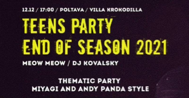 На крайней вечеринке в этом году тебя ожидает: Незабываемые эмоции 5 часов беспрерывных танцев «до упаду» Топовые хиты «Мияги & Эндшпиль» Розыгрыш денег среди купивших VIP билеты TEENS PARTY это: ⛔️ вечеринки без алкоголя и сигарет ⛔️ вечеринки без грубого или слишком вульгарного поведения ⛔️ безопасность, во время вечеринки все подростки находятся под присмотром охраны и организаторов ⚠️ В СЛУЧАЕ НЕ СОБЛЮДЕНИЯ ПРАВИЛ ПОДРОСТОК ИЛИ ЛЮБОЕ ДРУГОЕ ЛИЦО НЕМЕДЛЕННО ПОКИДАЕТ ВЕЧЕРИНКУ TEENS PARTY ⚠️ Подробная информация и покупка билетов @teenspartyua