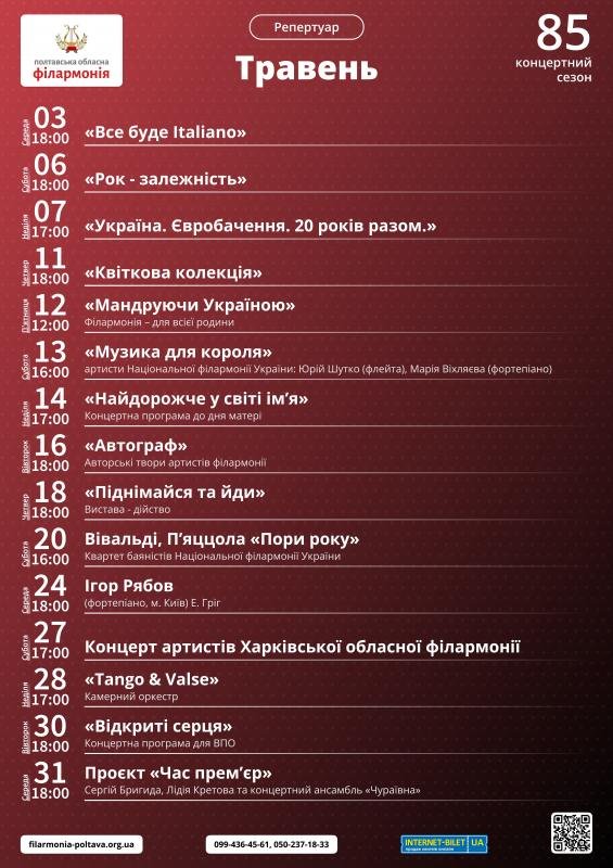 Репертуар Полтавської обласної філармонії на травень