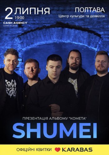 У цей непростий для нашої країни час народжується дуже потужна, глибока й потрібна музика, з’являються талановиті виконавці, які творять новітній вимір українського шоубізнесу. Молодий співак з харизматичним вокалом Олег Шумей (SHUMEI) за декілька тижнів до повномасштабного вторгнення росії на територію України випустив свою дебютну пісню, яка зараз є одним з музичних рупорів для українського суспільства. На четвертий день війни написав пісню «Тривога», від якої щоразу мороз іде по шкірі, яка й сьогодні передає душевний стан кожного українця. SHUMEI: «Я не можу підібрати слів, щоб описати нашу націю. Мужністю кожного УКРАЇНЦЯ зараз вражається весь світ» Його пісні та кавери слухають на фронті, на патріотичних заходах, у середовищі української діаспори за кордоном. І вже зовсім скоро Ви матимете змогу почути їх наживо. Зустрічайте SHUMEI з концертом у Вашому місті!