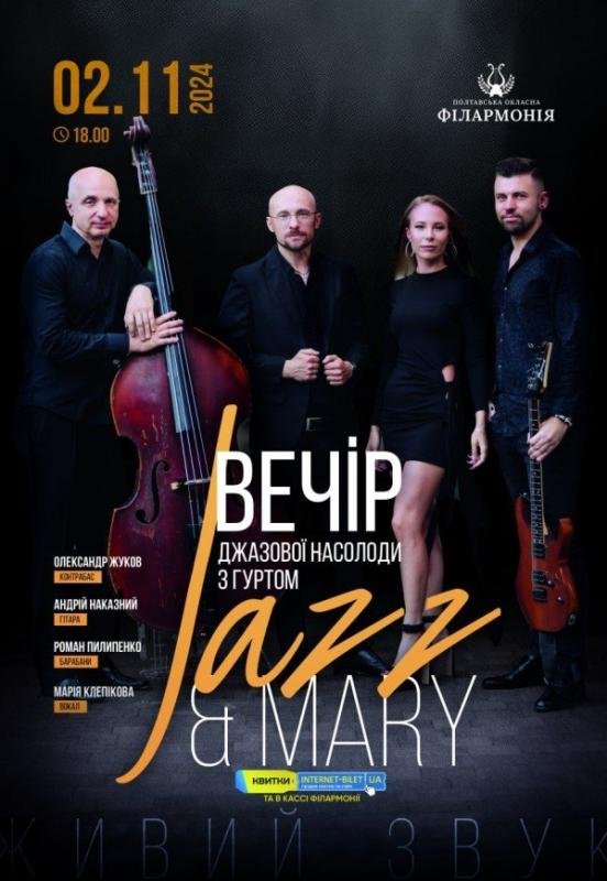 Не відмовляй собі у задоволенні відчути дотик джазовоі насолоди. Проведи незабутній вечір разом з гуртом Jazz and Mary
