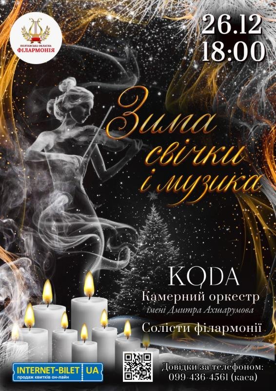 Концерт при свічках Камерного оркестру імені Д. Ахшарумова (художня керівниця – Лідія Шкаровська) та солістів – це медитація, де свічки не лише освітлюють, а й викликають відчуття спокою, крихкої краси, створюють атмосферу глибокої інтимності, яка веде слухача через світлий бік зими.