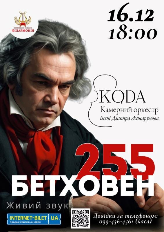 Запрошуємо вас на величний вечір музики німецького генія з нагоди 255-річчя з Дня народження у виконанні KODA (художня керівниця – Лідія Шкаровська) 16 грудня о 18:00 в елегантній, затишній залі Полтавської обласної філармонії.