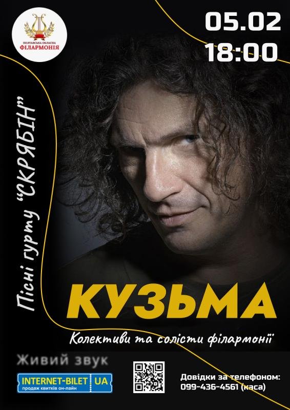 Приходьте поспівати відомі пісні Андрія Кузьменка та гурту «СКРЯБІН» разом із артистами філармонії: заслуженою артисткою України Тетяною Садохіною, Мариною Ткаченко, Андрієм Діденком, Анастасією Радченко, Вікторією Бовтік, Олексієм Рубаном, Ларисою Борисенко, концертним ансамблем «Чураївна».