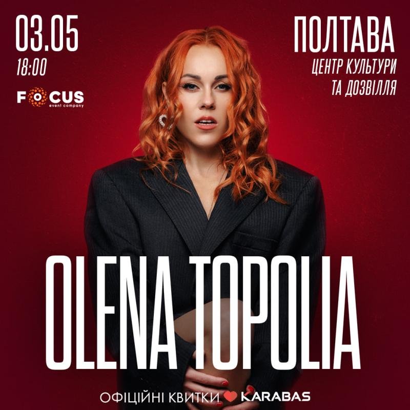 Вперше Олена Тополя вирушає у великий сольний концертний тур Україною?? ? 3 травня ? 18:00 Центр культури та дозвілля Щирість, сила голосу й пісні, що торкаються серця! Улюблені хіти, нові композиції та особлива атмосфера щирих емоцій❤️ Цей тур - не просто концерти. Це нова сторінка. І її голос, як і завжди, звучатиме чесно. Квитки на сайті https://tickets.karabas.com/PublicApi/TicketWidgetSvg.aspx?__uid=ane4bcbMRxyHdbbOe872ig&lang=ua&event=2739239761