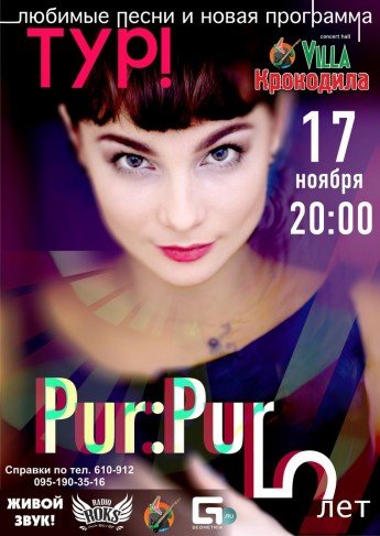 В честь круглой даты группа подготовила энергичную, проникновенную программу. Теперь басовые и клавишные партии исполняет харьковская пианистка Алина Бронишевская. Поклонников ждут не просто выступления, а теплые, радостные встречи, во время которых «Pur:Pur» исполнят новые и старые композиции в оригинальной трактовке.