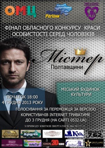 Финал областного конкурса красоты личности среди мужчин «Мистер Полтавщины».