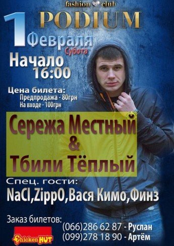 Вперше в Полтаві "Сережа Местный" и Тбили Теплый! Спецыальны гості вечора NaCl, ZippO, Вася Кимо, Финз. У програмі вечора презентація нового альбому "Попеременно" + Всі хіти!