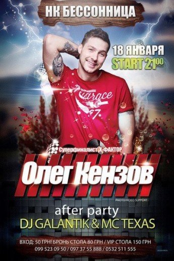 Суперфіналіст шоу "Х-фактор. Революція". Олег працює МС і часто проводить різні вечірки і заходи. Його можна було побачити в різних українських клубах.