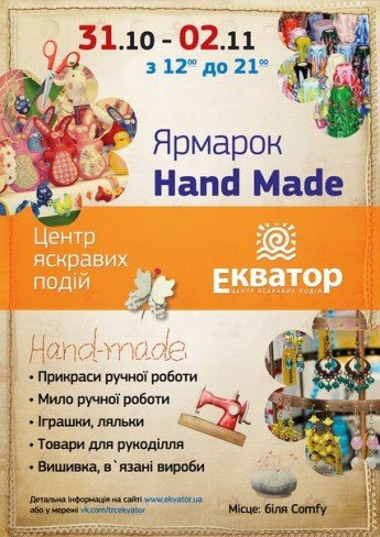 Найкращі майстри міста виставлять кращі свої роботи, Ви матимете змогу придбати прикраси ручної роботи, засоби гігієни, іграшки та ляльки, в`язані вироби