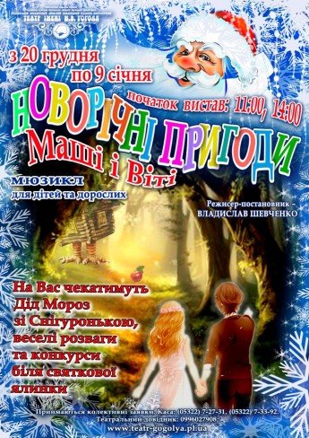 Що найбільше полюбляють діти? Звичайно казки! Саме у таку чарівну, сповнену пригод казку покличуть всіх, хто вірить в чудеса, герої мюзиклу «Новорічні пригоди Маші і Віті».
