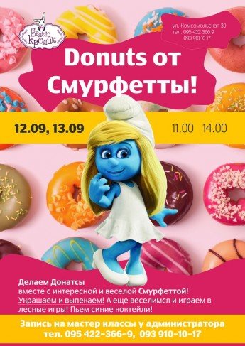 На этой неделе 12 и 13 сентября состоится мастер - класс Donuts от Смурфетты, всех ждем в мастерской печенья "Белый кролик".