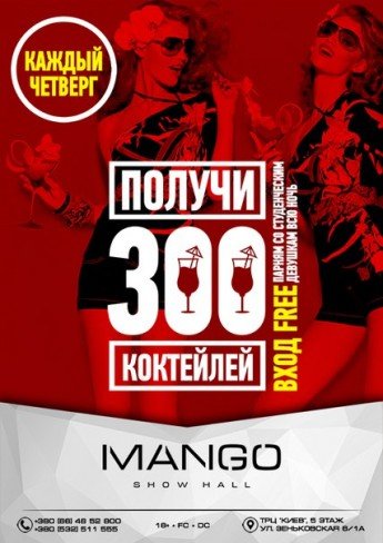 Каждый четверг Show hall "Mango" массово угощает наших любимых студентов всех ВУЗов Полтавы!