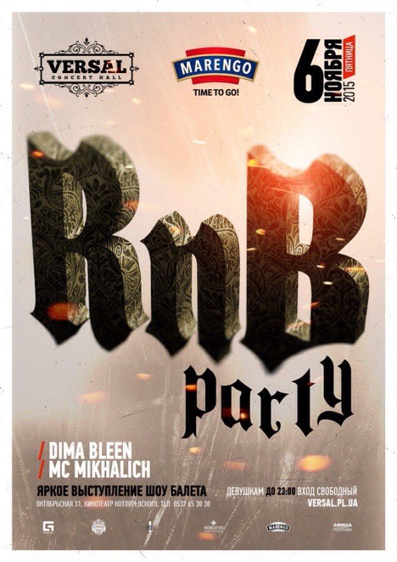 6 ноября, сoncert hall "VERSAL" приглашает полтавчан на тематическую вечеринку  "RnB".