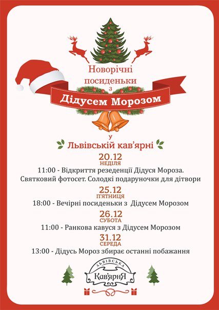 Вже зовсім скоро розпочуться новорічні посиденьки з Дідусем Морозом! Не лише малюки, а й дорослі мають змогу особисто зустрітися з ним та загадати йому свої найпотаємніші бажання, які обов'язково збудуться в наступному році...