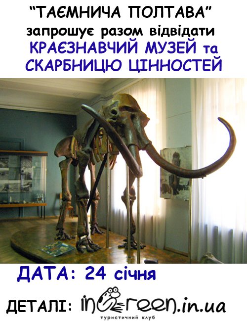 Опис проекту: добровільне об'єднання однодумців на основі спільних інтересів , для спільних походів в музеї та на екскурсії в межах міста Полтава та Полтавського району. Проект не є ні комерційним , ні благодійним . Організатори не надають жодних туристичних послуг , а збирають однодумців для проведення спільного змістовного дозвілля . Екскурсії проходять регулярно кожен місяць. Участь у проекті є добровільною