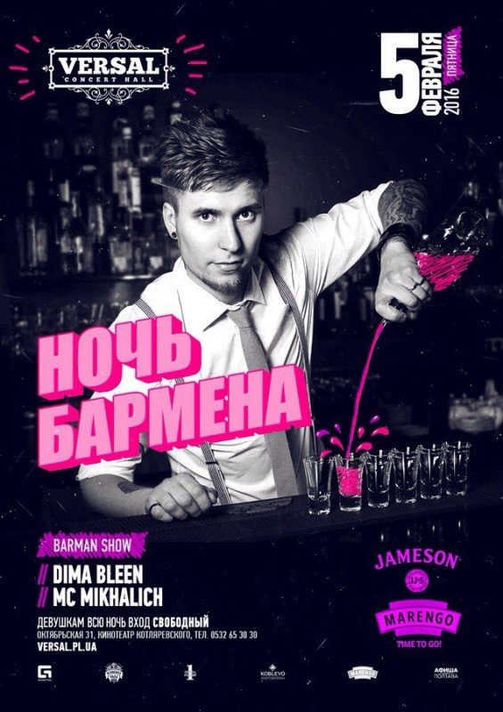5 февраля, Версаль приглашает всех на зажигательную и яркую тематическую вечеринку "Ночь бармена".