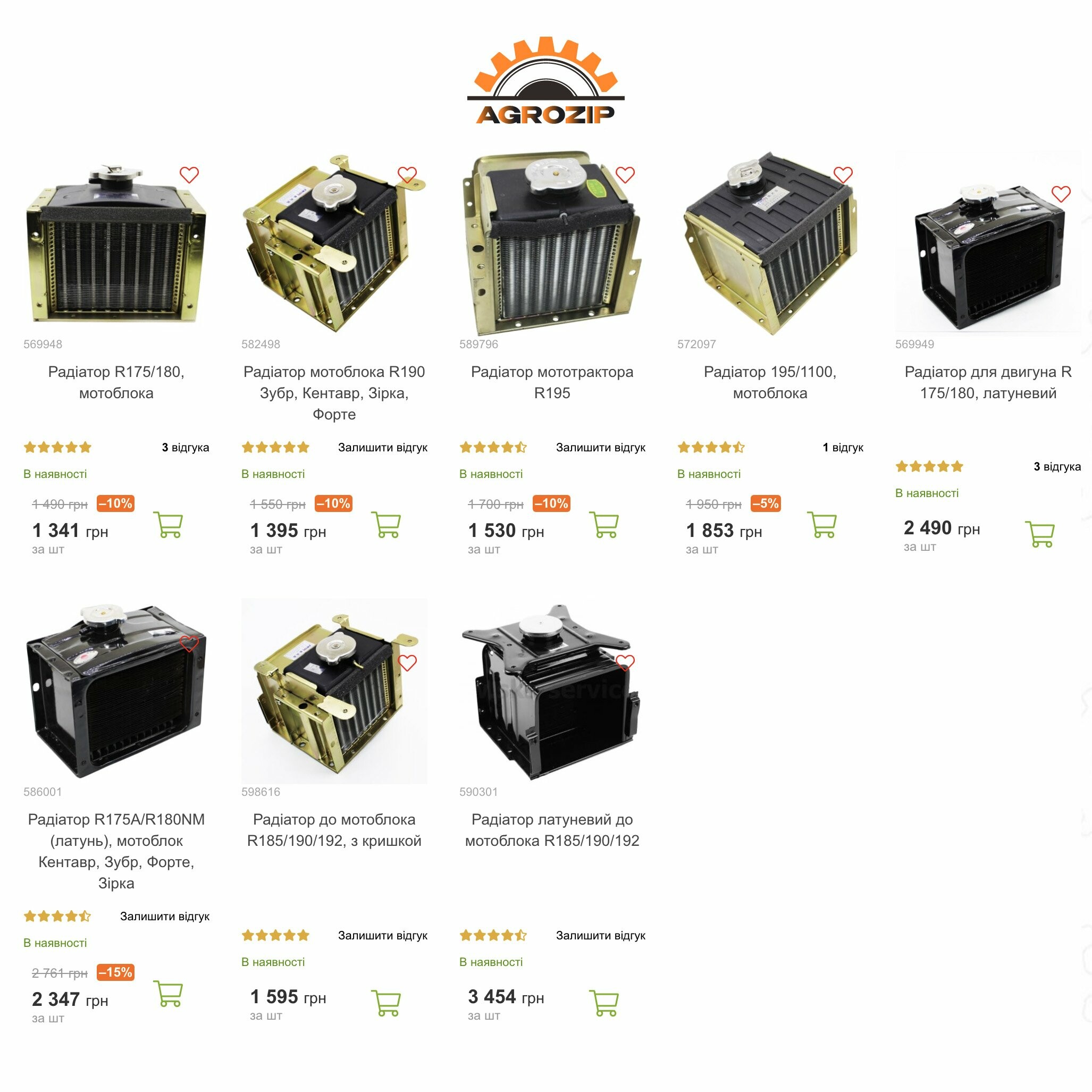 У магазині Agrozip ви можете купити радіатор до двигуна в Полтаві з доставкою по Україні. Ми пропонуємо радіатори для найпоширеніших моделей дизельних двигунів мотоблоків: R180, R190, R195 та інших.