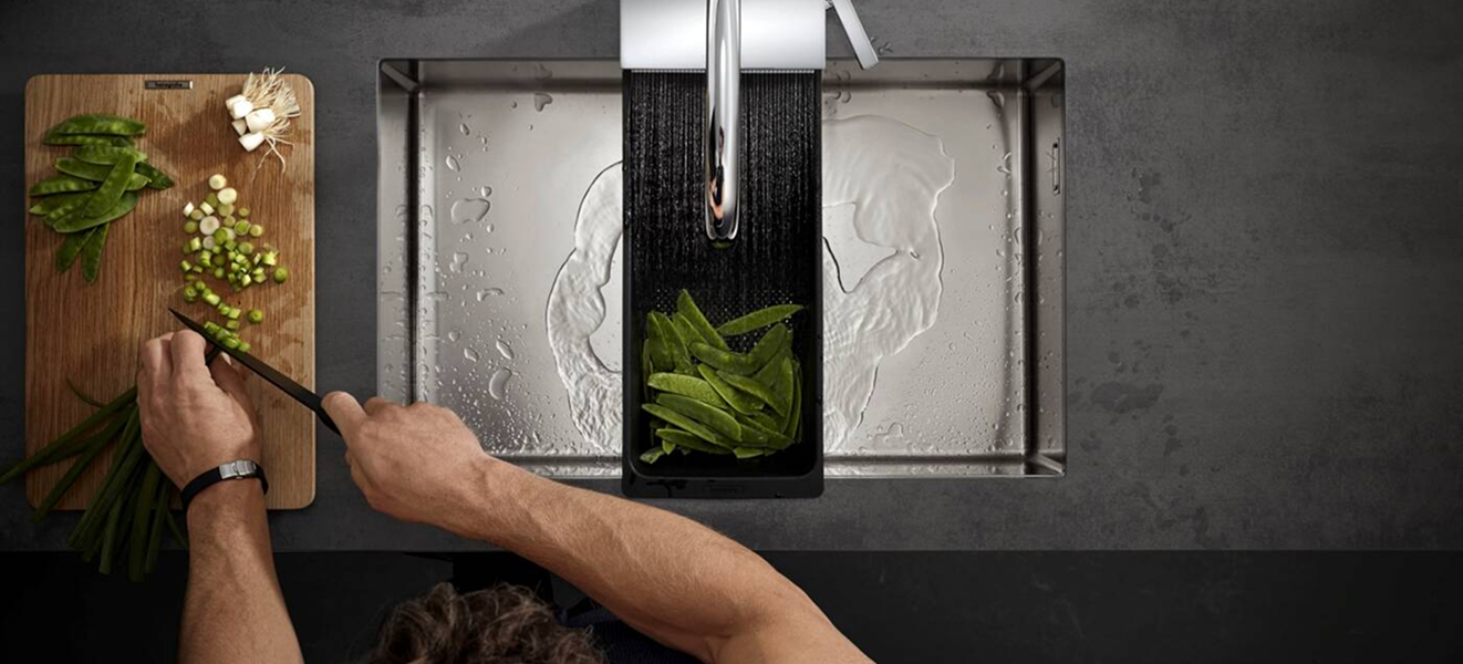 Також у якісних аксесуарів, наприклад, бренду Hansgrohe, є спеціальні пази, які надійно закріплюють вироби. Вони не будуть зісковзувати і зможуть витримувати вагу продуктів та посуду. Тому приготування їжі буде безпечним та зручним.