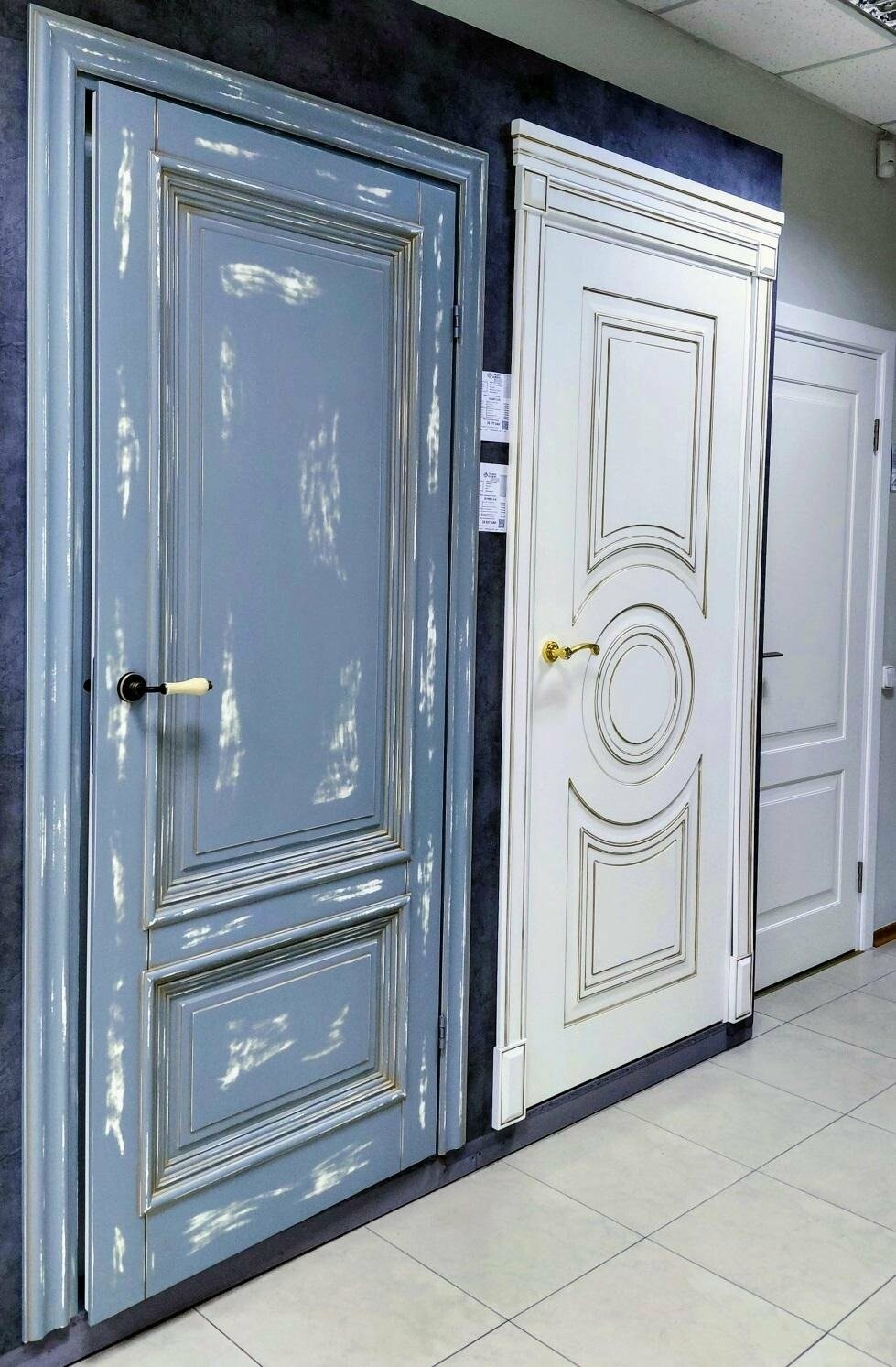 Особливо витончено виглядають моделі в стилі Прованс або неокласика. У таких дверях вітається канелюрний наличник — з вертикальними рифленнями, портальні конструкції навколо дверного отвору, що створюють ефект архітектурної завершеності. Декоративне патинування або легке состарювання поверхні додає глибини кольору та підкреслює витонченість форм.