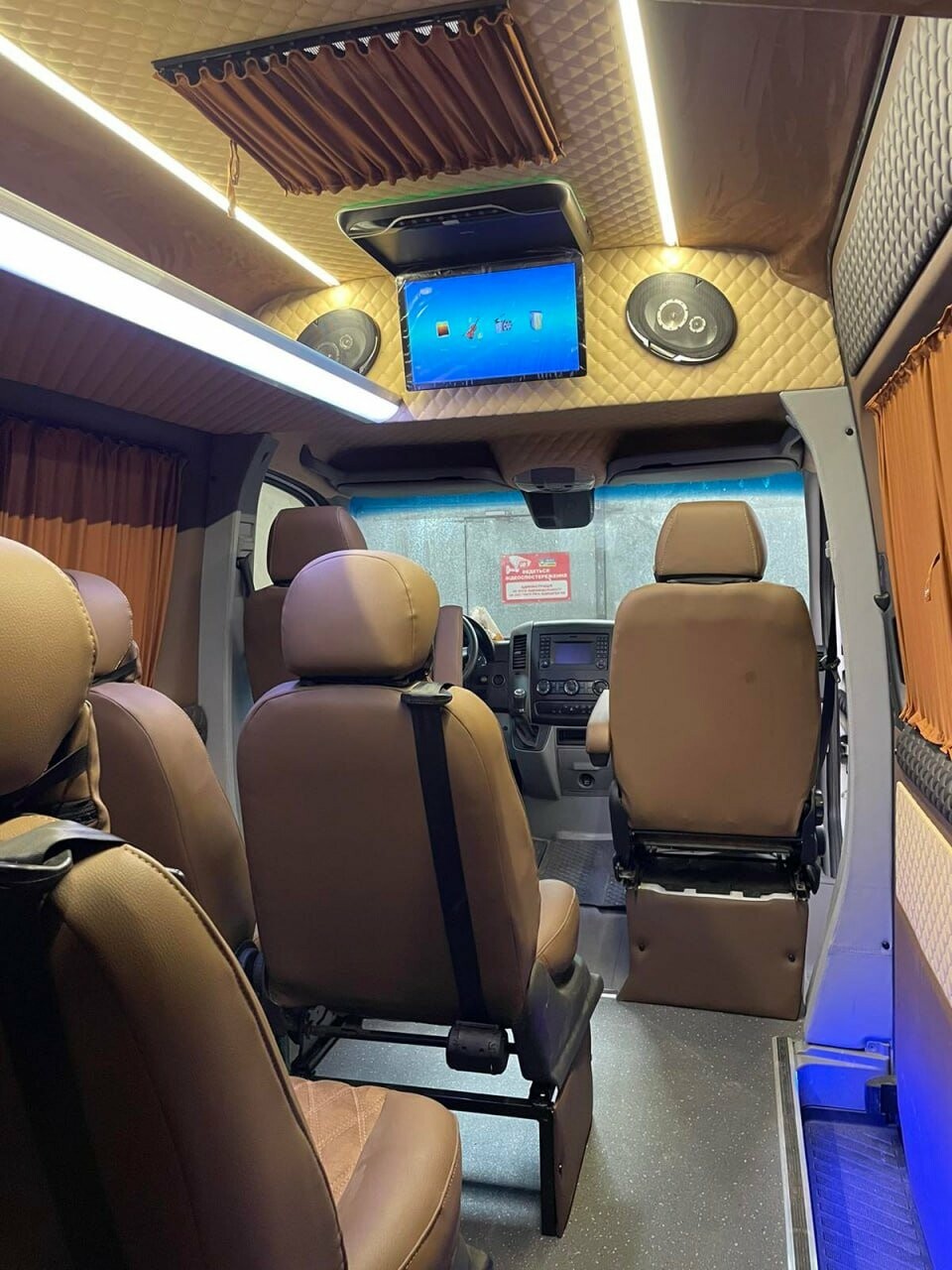 - Медичний модуль (швидка допомога): Переобладнання мікроавтобусів для медицини включає встановлення спеціальних нош (з фіксацією за ГОСТ), кисневих балонів, УФ-стерилізатора салону та системи виклику "лікар-водій". Популярна модель — Mercedes Sprinter з високим дахом.