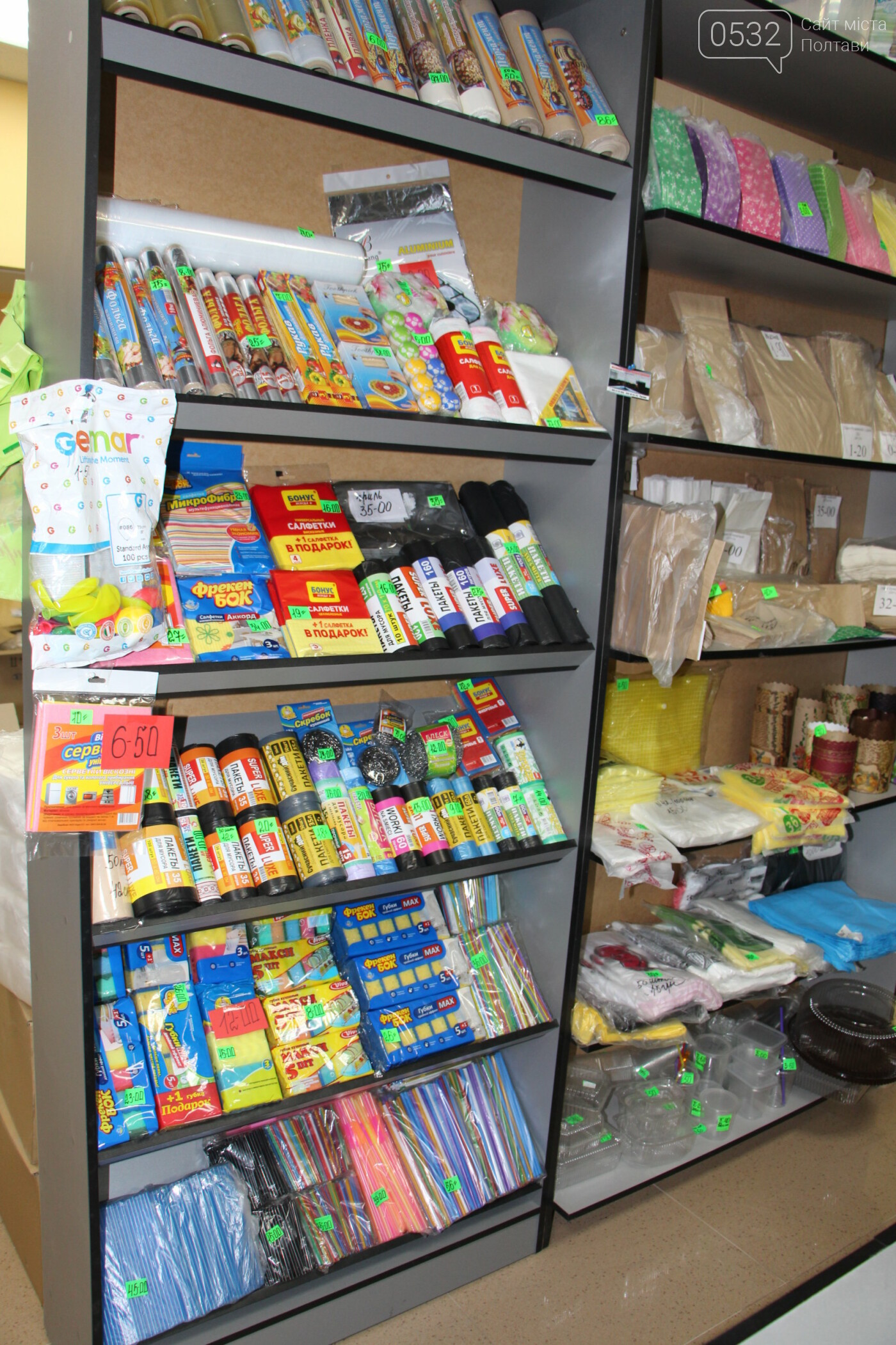 У відділі упаковки можна придбати різні її види – паперову, пластикову, полістирольну. У відділі паперової групи товарів – рушники, серветки, туалетний папір. Магазин також має значний асортимент господарських виробів із пластмаси. А для господинь – великий вибір фольги, пергаменту, рукавичок, скатертин.