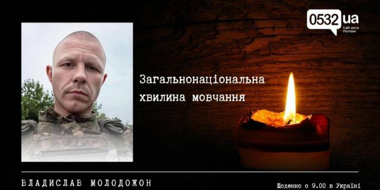 Команда журналістів 0532.ua долучається до загальнонаціональної хвилини мовчання, аби вшанувати пам’ять тих, хто віддав життя за свободу та незалежність України. Сьогодні ми згадуємо воїна з Полтавщини Владислава Молодожона, який віддав життя, захищаючи Україну від російської агресії. Молодожон Владислав народився 29 травня 1990 року у селі Золотухи Оржицької громади. Навчався у місцевій школі, після чого здобув середню спеціальну освіту на Чернігівщині. П...