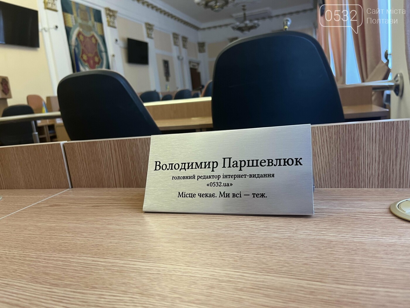 У вівторок, 10-го червня, в сесійній залі Полтавської міської ради встановили іменну табличку головному редактору інтернет-видання «0532.ua» Володимиру Паршевлюку, який вже понад рік вважається безвісно зниклим.