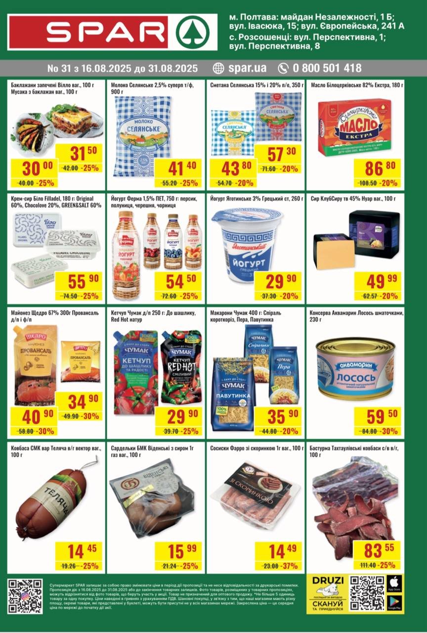 Акційні ціни діють у магазинах SPAR у Полтаві: