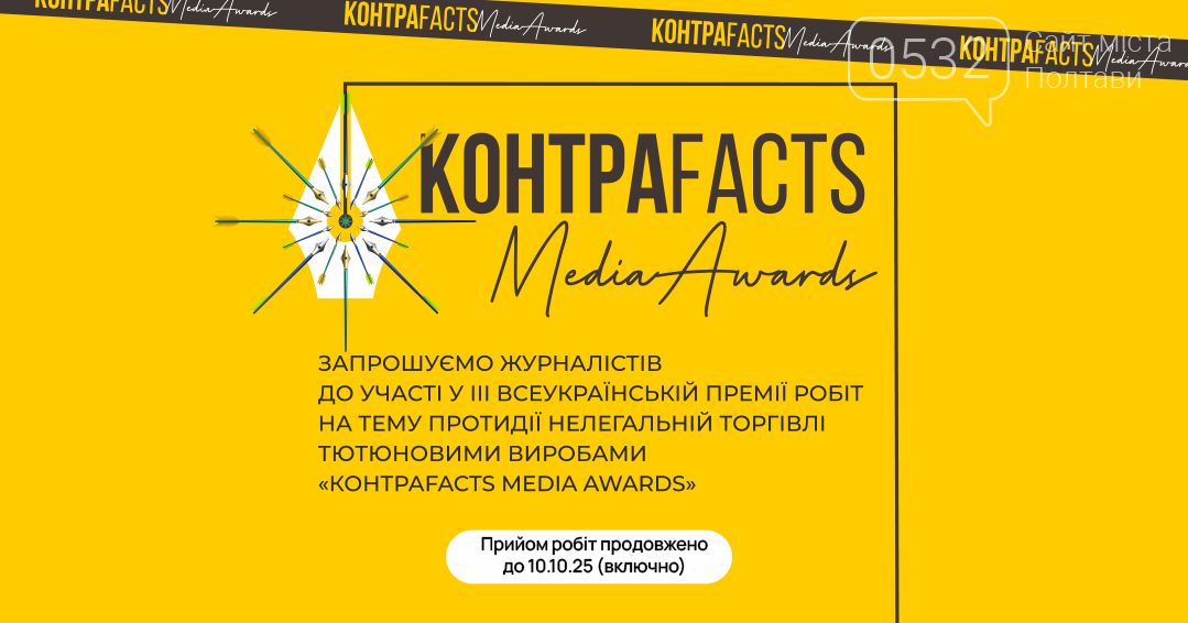 Організатори III Всеукраїнської премії журналістських робіт КонтраFACTS Media Awards оголосили про продовження терміну прийому заявок до 10 жовтня включно. Конкурс відзначає кращі журналістські матеріали, присвячені боротьбі з нелегальною торгівлею тютюновими виробами.