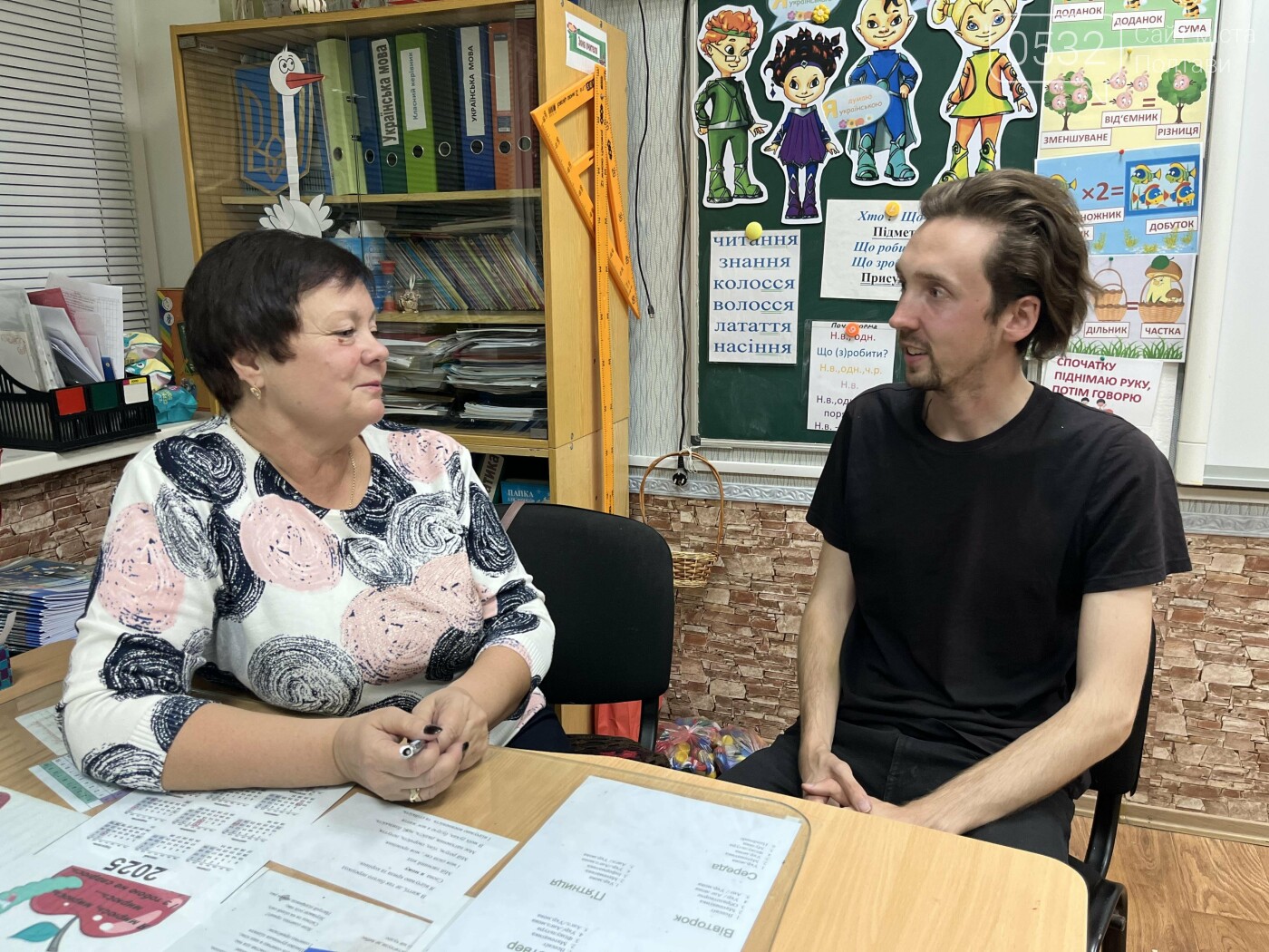 «Кожен клас має свій куточок, парти, дошку. Під час тривог ми швиденько спускаємося й продовжуємо працювати», – каже пані Олена.