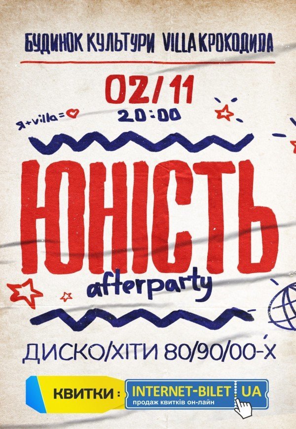 У неділю ввечері у Concert Hall «Villa Крокодила» відбудеться яскрава вечірка «Юність». Танці, музика та неймовірна атмосфера для тих, хто хоче активно провести завершення вихідних.