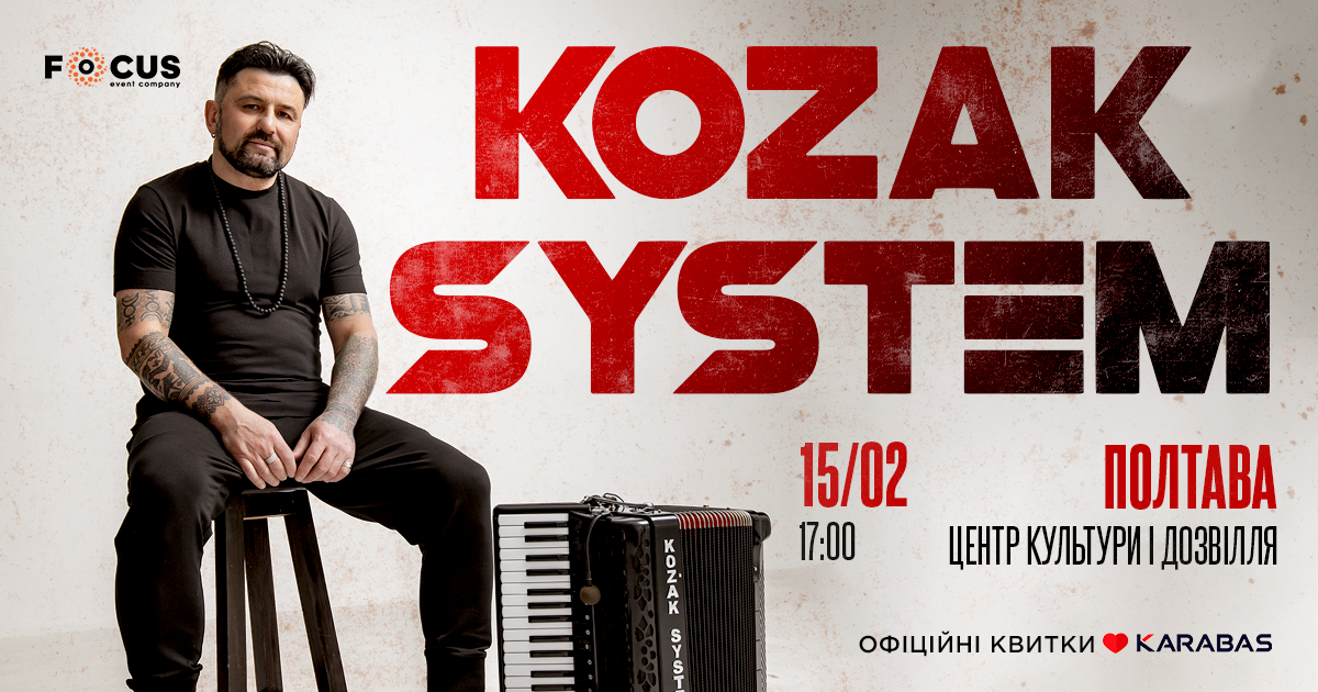 У суботу, 15 лютого, гурт KOZAK SYSTEM приїде до Полтави з концертом, який обіцяє стати подією для всіх поціновувачів сучасної української музики. Початок - о 17:00 у Центрі культури і дозвілля.