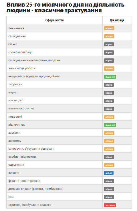 День вважається вдалим для очищувальних процедур, особливо водних. Рекомендують приділити увагу розвитку інтуїції та прислухатися до знаків і підказок долі.