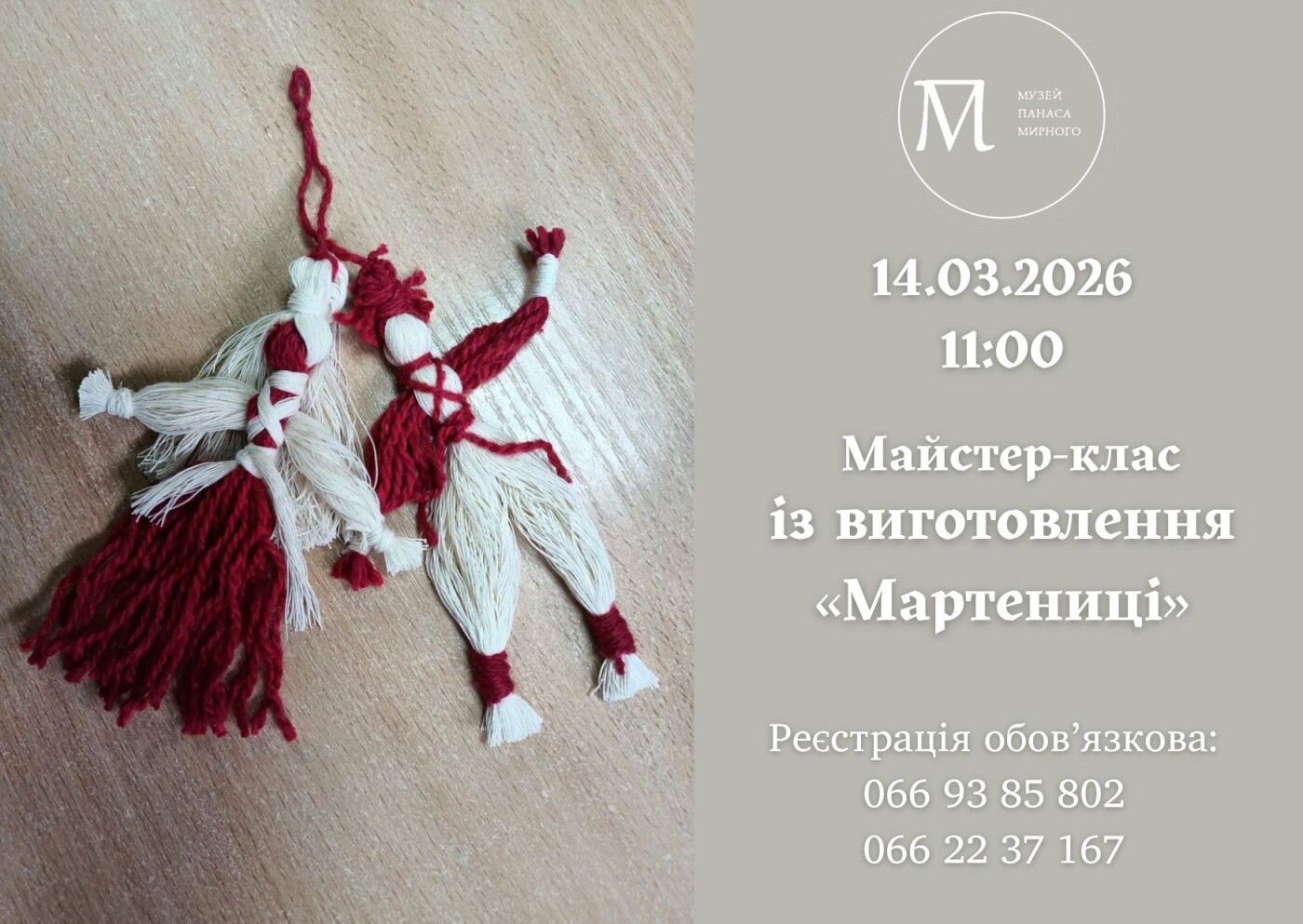 Учасників запрошують створити власноруч традиційну прикрасу — мартеницю. Це невелика прикраса з білої та червоної пряжі, що символізує прихід весни та надію на добробут.