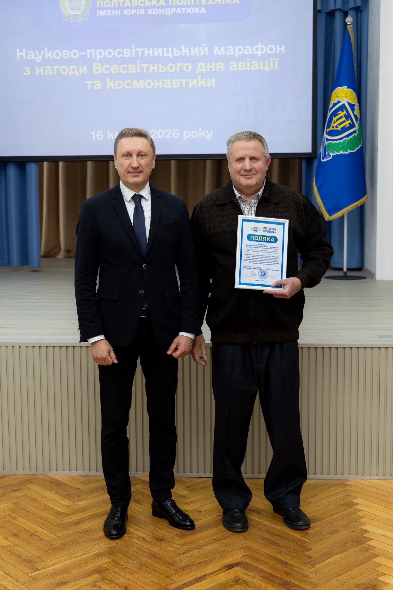 Долучився до марафону і директор Полтавської гравіметричної обсерваторії Інституту геофізики імені С. І. Субботіна НАН України, доктор фізико-математичних наук, старший науковий співробітник Михайло Лубков, який представив досвід унікальної інституції, що нещодавно відзначила своє сторіччя. Він вручив подяку колективу наукового закладу за багаторічну співпрацю та партнерство, відкритість до діалогу, високу академічну культуру, створення фундаменту для виховання майбутніх поколінь інженерів та науковців, збереження безцінних наукових традицій Полтавщини та з нагоди 100-ліття від дня заснування.