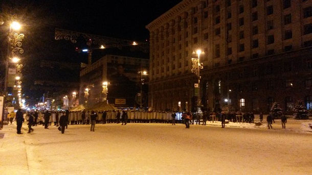 3:20 Находящиеся на Майдане Незалежности митингующие отрезаны правоохраниелями от входов в КГГА и Дом профсоюзов, в которых забаррикадировались люди.