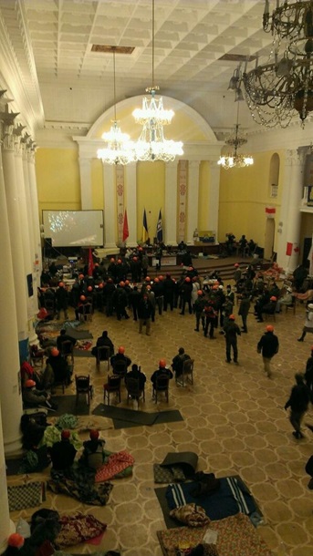 3:19 В КГГА снова есть электричество, митингующие в здании наблюдают за событиями на Майдане.