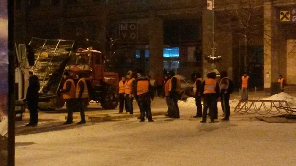 3:30 На Майдане Незалежности правоохранители и сотрудники коммунальных служб разбирают палатки митингующих. Штурм баррикады на Институтской продолжается, конструкции распиливают с помощью бензопил.
