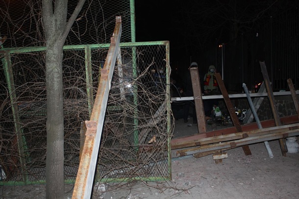 За ночь противостояния митингующие разобрали значительную часть брусчатки на улице Грушевского возле парламентской библиотеки и стадиона имени Валерия Лобановского, при этом часть камней запасли на случай штурма, образовав из них небольшие кучки.